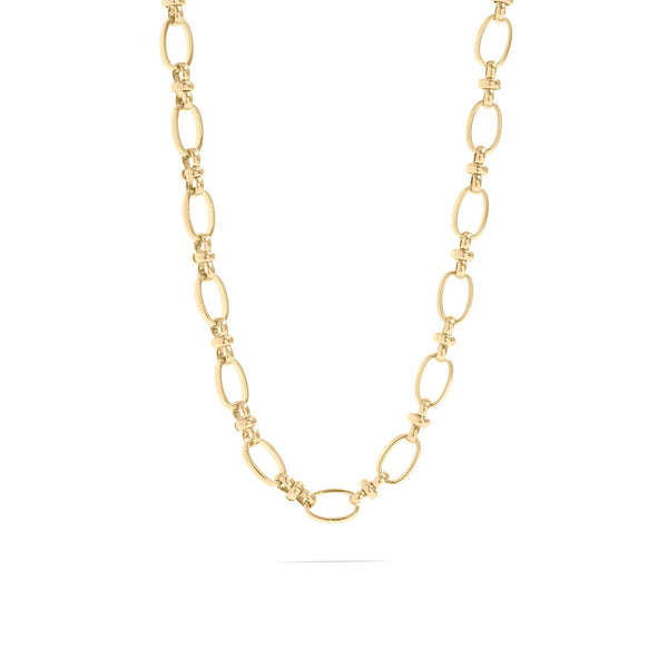 This sleek, maximalist chain necklace featuring a delicate open circle charm link design that adds effortless sophistication to any look.