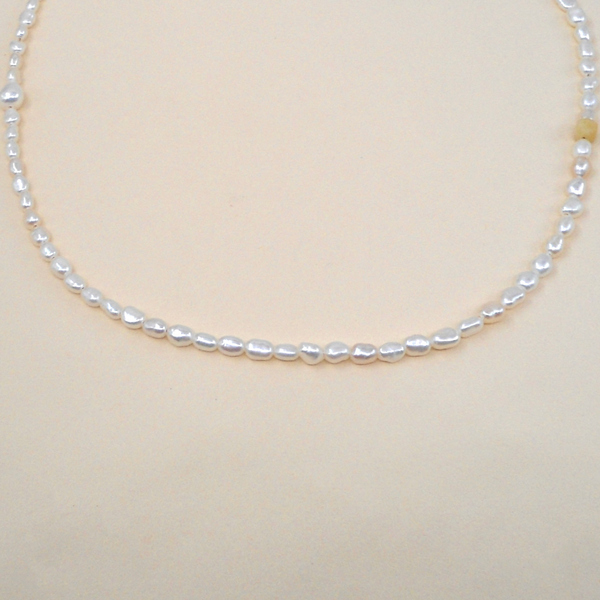 Material: Fresh water seed pearls, African yellow Opal Length: 14" chain with 1.5" extender *Size and shape of pearl may vary, slight color variation in gemstones Made by hand in Southern California