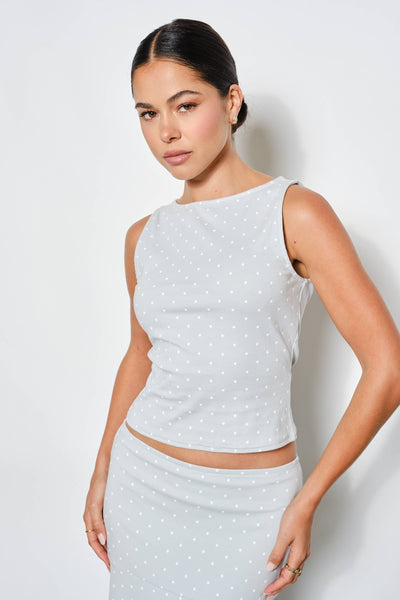 playful polka dot tank. Matching skirt also available.