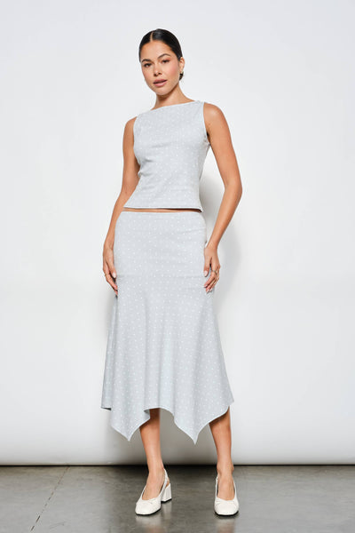 Bring on the playful vibes in the Kira Midi Skirt— sweet polka dot print.