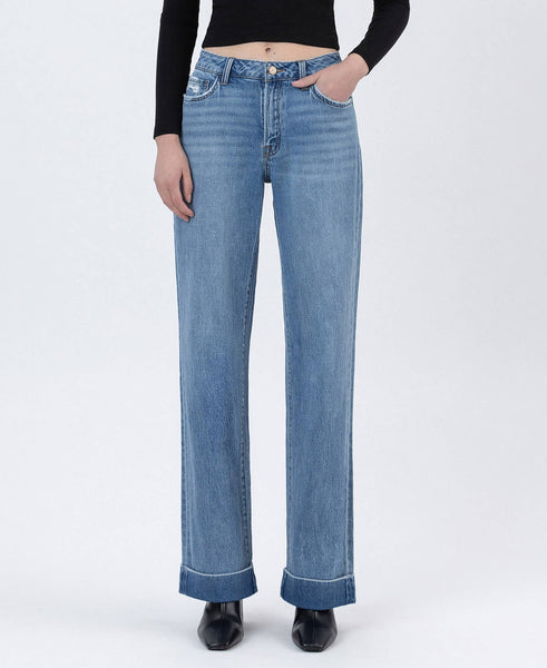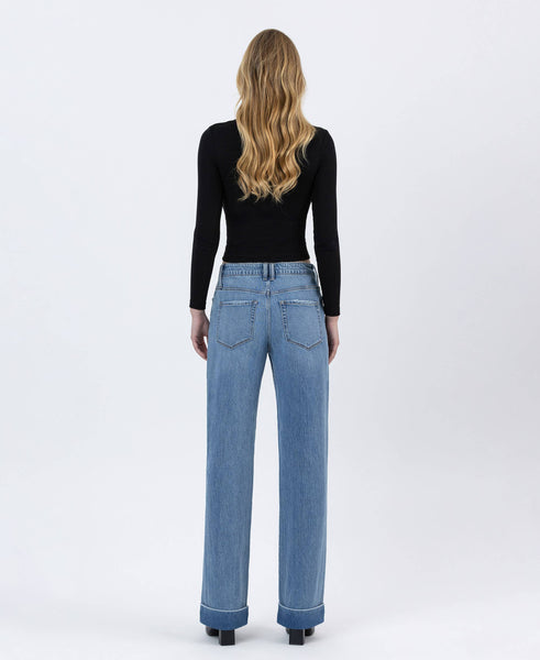 High rise. Cuffed detailing. Wide leg, comfort stretch. Baggy fit.