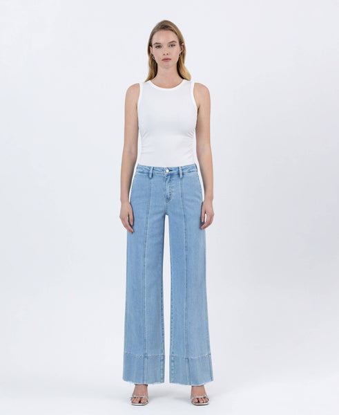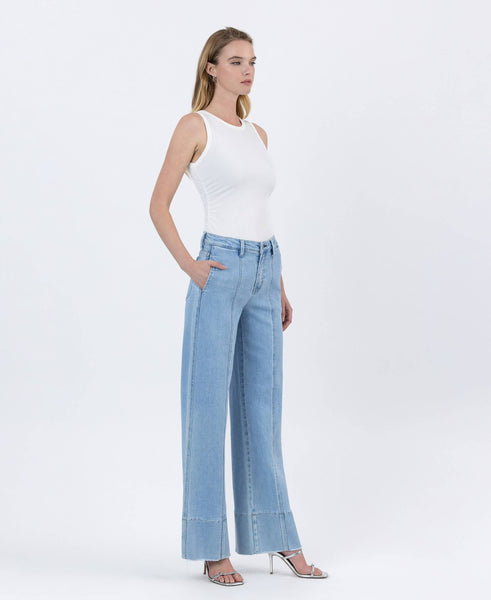High rise. Pocket trouser. Wide. Comfort stretch denim.