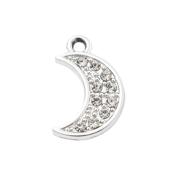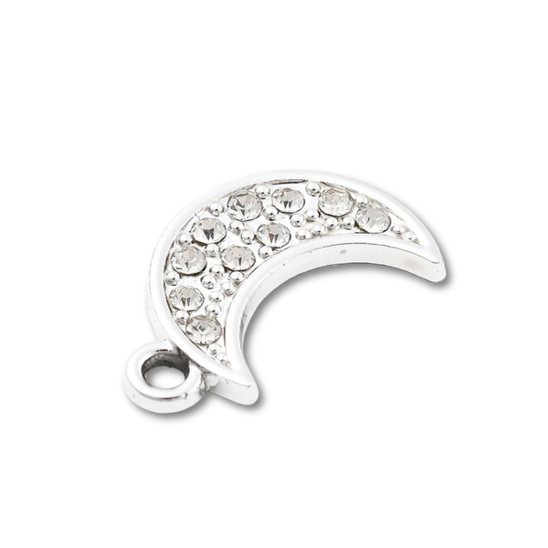 sparkle moon charm, crafted from alloy and finished in a polished silver tone for a timeless celestial look.